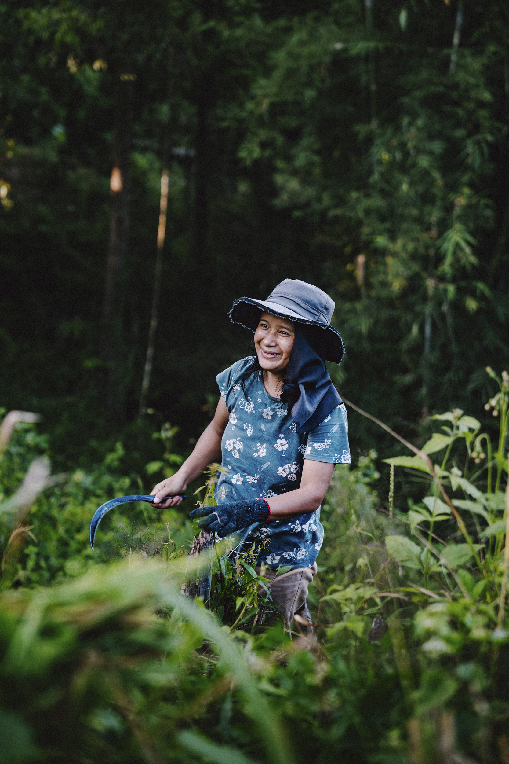 “I love that image,” she continues, “because to me, it portrays Thailand very well in its colour, its energy and how welcoming it is. It’s the same with the woman working in the rice field. I was watching them work, and she said, “come here and help!” We connected and taking her picture was a very, very happy moment.”