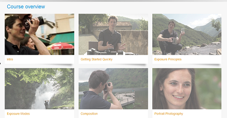 The training covers a wide range of topics, from "Get an overview of the main functions of your camera" to "Capture impressive videos of your favourite subjects".